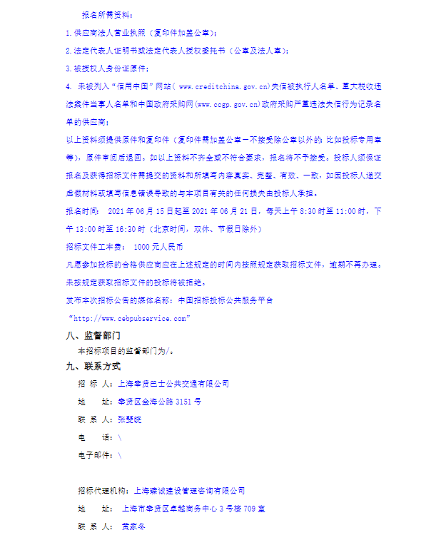 招标公告-奉贤巴士车辆车身广告使用权竞争性磋商公告-5030299