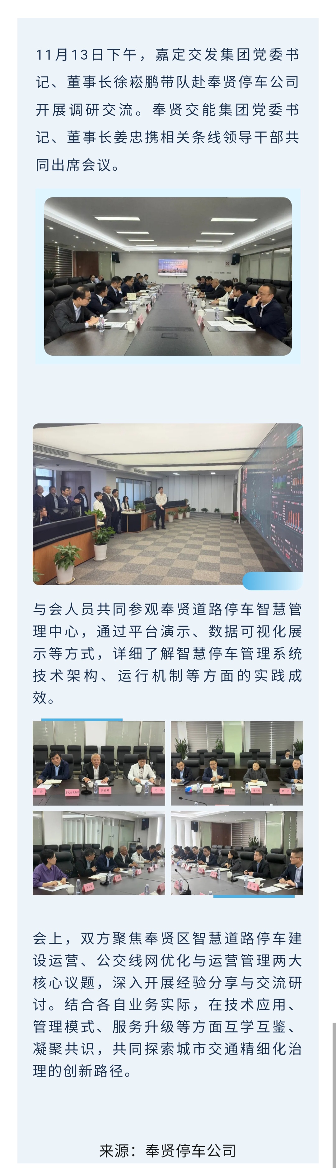 凝聚共识 共促提升 | 嘉定交发集团赴奉贤停车公司调研交流