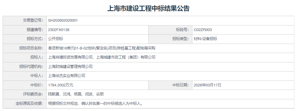 https://ciac.zjw.sh.gov.cn/JGBAppZtbInterWeb/pc/#/jyggInfo?id=2209671&zbid=2004933&projectName=%E5%A5%89%E8%B4%A4%E6%96%B0%E5%9F%8E18%E5%8D%95%E5%85%8301-B-02%E5%9C%B0%E5%9D%97%28%E6%9A%82%E5%AE%9A%E5%90%8D%29%E9%A1%B9%E7%9B%AE%28%E9%99%A4%E6%A1%A9%E5%9F%BA%E5%B7%A5%E7%A8%8B%29%E9%85%8D%E7%94%B5%E7%AE%B1%E9%87%87%E8%B4%AD&gglx=zbgg&category