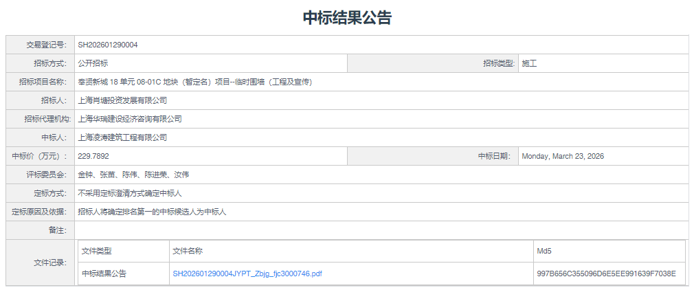 https://ciac.zjw.sh.gov.cn/JGBAppZtbInterWeb/pc/#/jyggInfo?id=3000746&zbid=2082606&projectName=%E5%A5%89%E8%B4%A4%E6%96%B0%E5%9F%8E%2018%20%E5%8D%95%E5%85%83%2008-01C%20%E5%9C%B0%E5%9D%97%EF%BC%88%E6%9A%82%E5%AE%9A%E5%90%8D%EF%BC%89%E9%A1%B9%E7%9B%AE--%E4%B8%B4%E6%97%B6%E5%9B%B4%E5%A2%99%EF%BC%88%E5%B7%A5%E7%A8%8B%E5%8F%8A%E5%AE%A3%E4%BC%A0%EF%BC%89&gglx=zbjgggs&category=fyfbz