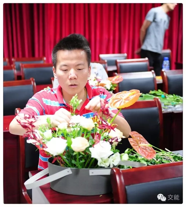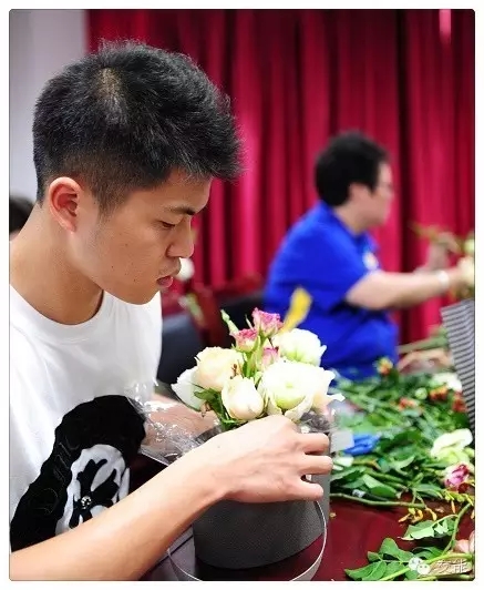 不要以为插花只是女人的节目,这位小哥的手也是很巧的。