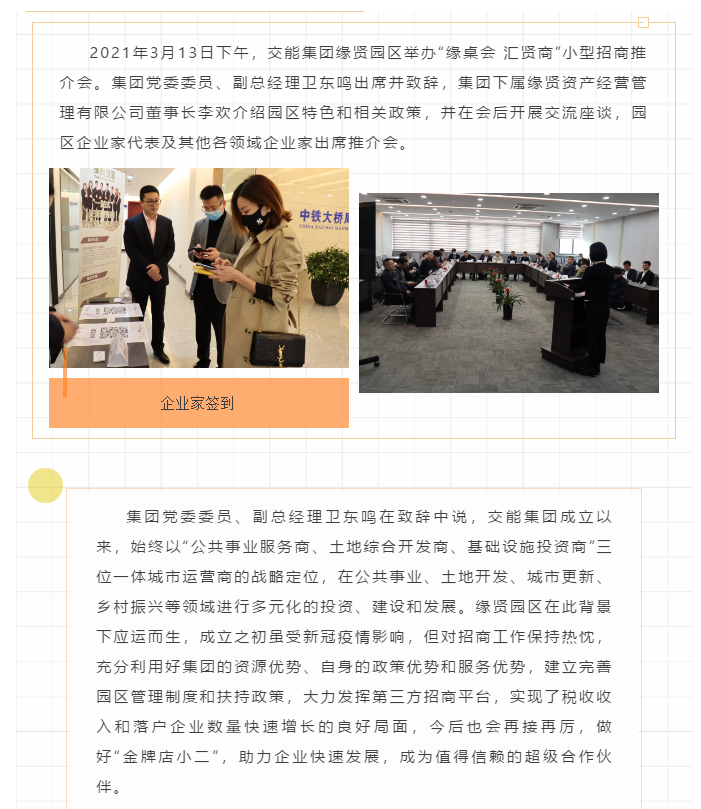 “缘桌会 汇贤商” 交能集团缘贤园区举办牛年首场招商推介会
