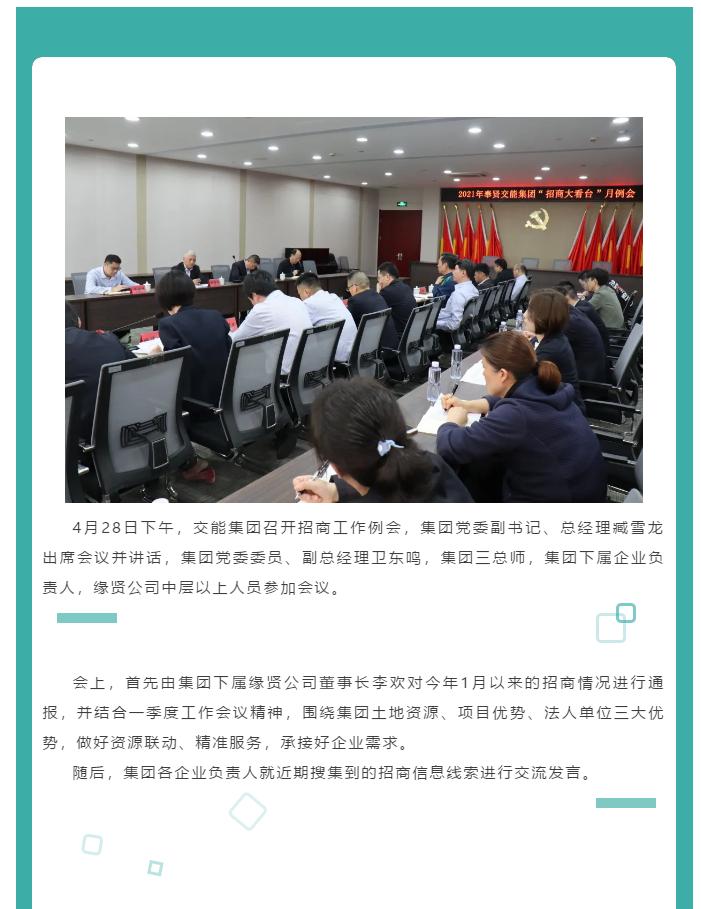交能集团召开2021年一季度“招商大看台”例会