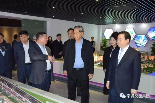 金光集团总裁黄志源等人在观看了一段精心制作的多媒体短片后,继续参观了展厅内各站点模型,听取了区交能集团党委书记、董事长瞿剑平的讲解。