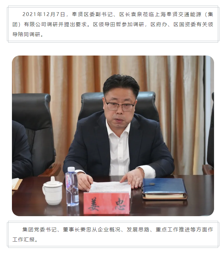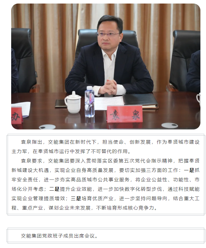 抓牢安全责任 提升企业效能 培育优质产业——奉贤区委副书记、区长袁泉调研交能集团