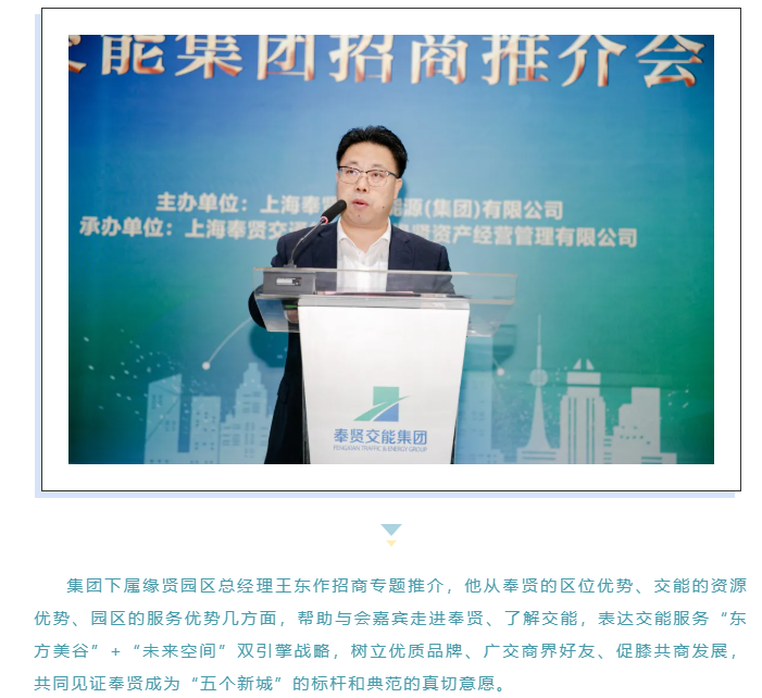 交能集团召开“奉贤的日子、花开的样子”招商推介会