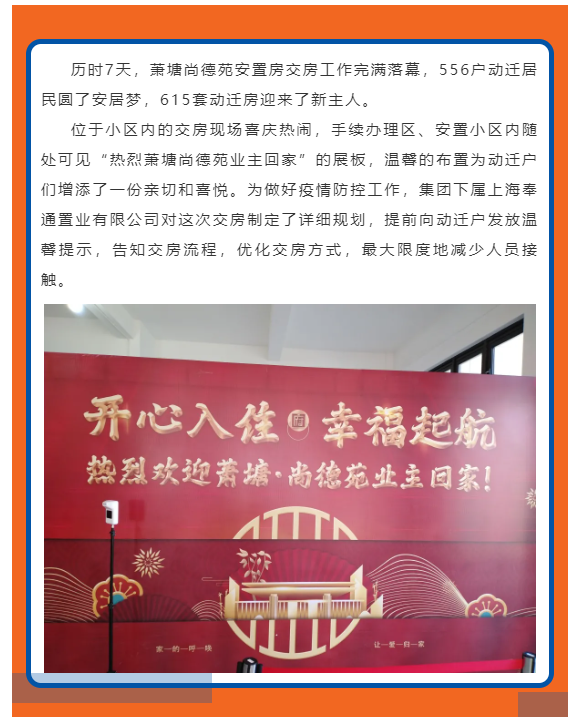 萧塘尚德苑安置房交房556户动迁居民圆安居梦
