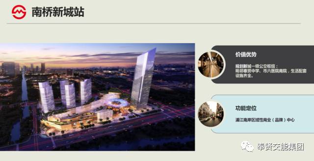 相信随着交通设施的大力发展,南桥新城的居住环境、商业品质必将得到大幅提升。肖塘站智慧城市,奉浦站文化科研产业圈,望园路站中央林地,金海湖站休闲娱乐,南桥新城站商业品牌中心更将“点亮”奉贤。