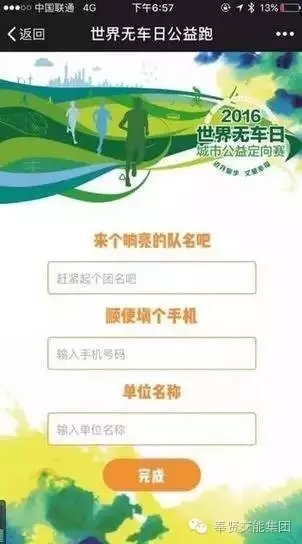 队长输入队名、手机号、单位名称,点击“完成”即成功建立队伍。