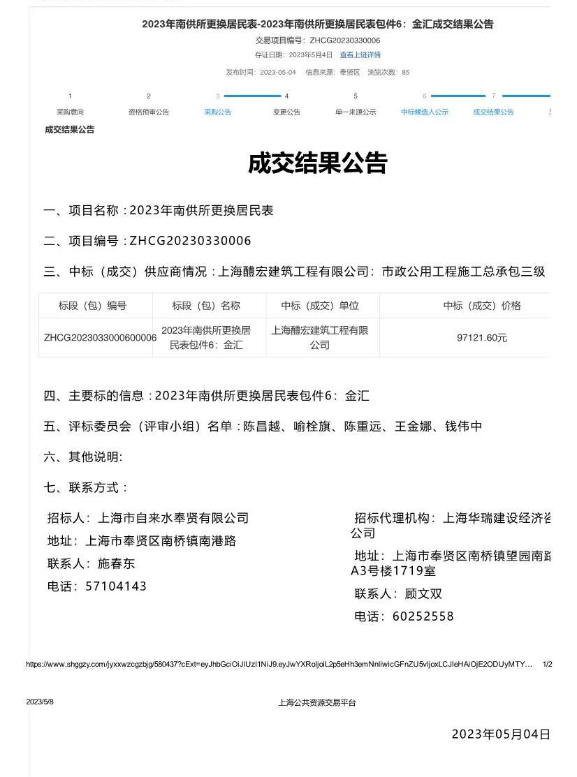 https://www.shggzy.com/jyxxwzcgzbjg/580437?cExt=eyJhbGciOiJIUzI1NiJ9.eyJwYXRoIjoiL2p5eHh3emNnIiwicGFnZU5vIjoxLCJleHAiOjE2ODUyMTYzMTk2MjN9.0wcIVQsOQBUB47jsJuJ3RfINtKbLPbl8I1ske_rLopE&isIndex=
