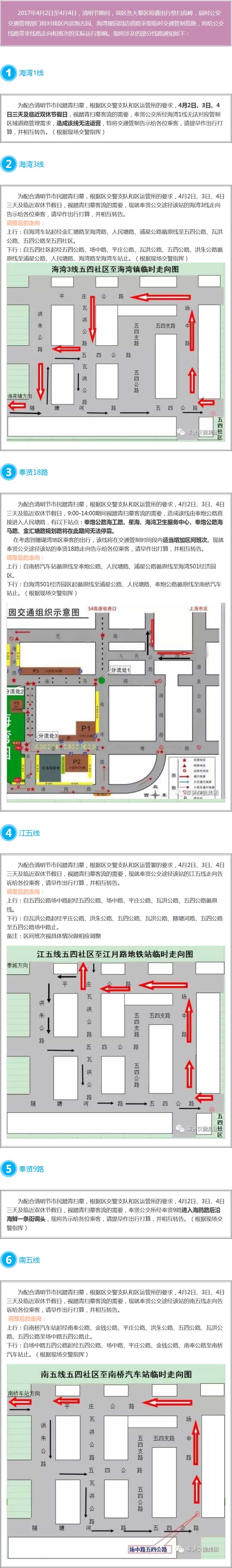 【提醒】清明小长假期间 奉贤公交部分线路临时走向调整