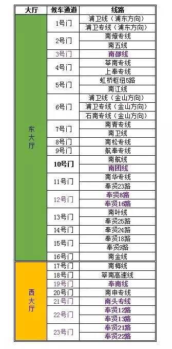 根据BRT南桥汽车站首末站建设施工需要,南桥汽车站北广场即将封闭改造。为此,南桥汽车站北广场现有公交线路将整体调整至南桥汽车站南广场发车。调整时间从2017年6月20日首班车起。其中,南邵线、南团线、奉贤8路、奉贤16路等4条线路站位迁至东大厅停靠上客;奉南线、南头专线、奉贤12路、奉贤13路、奉贤21路、奉贤22路等6条线路站位迁至西大厅停靠上客。受此影响,南桥汽车站东西大厅部分原有线路上客站位配合此次调整将作相应微调,具体见下文: