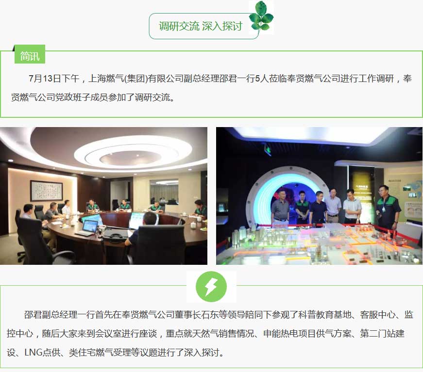 上海燃气集团领导莅临奉贤燃气公司调研交流