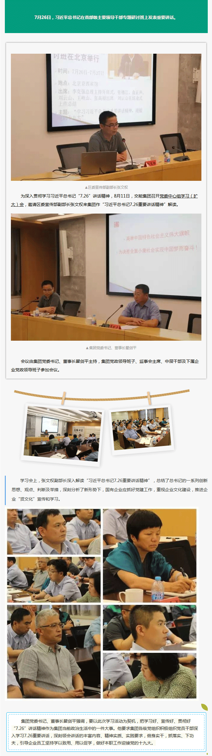 交能集团认真学习贯彻习近平总书记“7.26”重要讲话精神