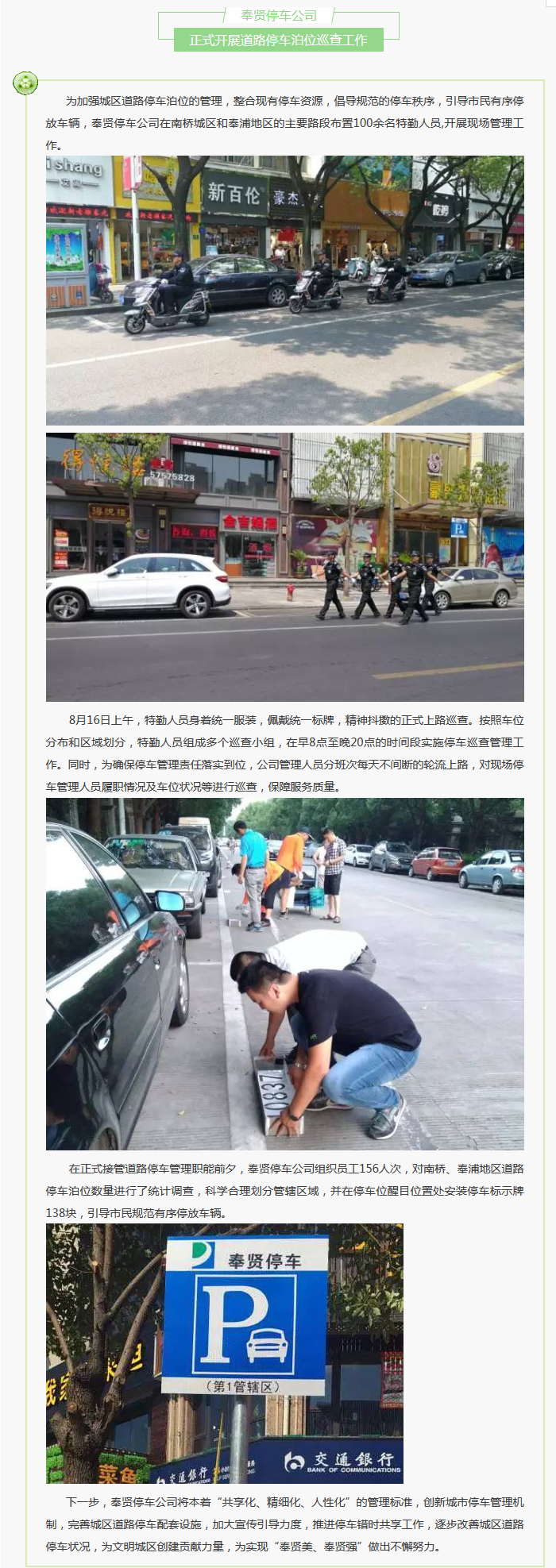 奉贤停车公司正式开展道路停车泊位巡查工作
