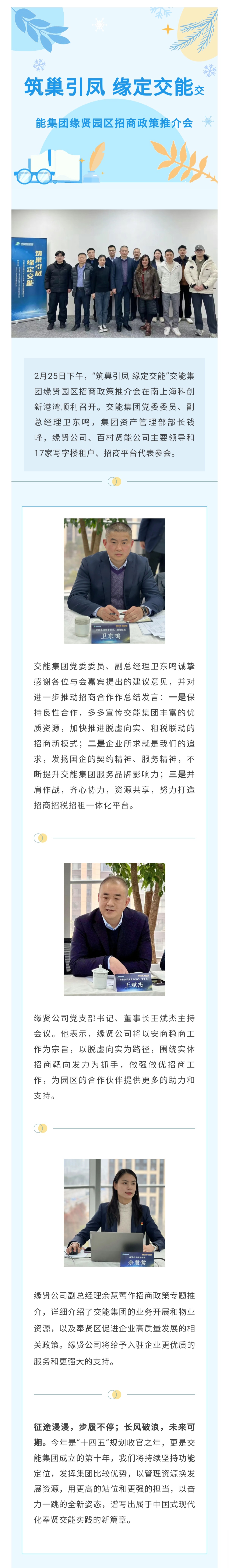 园区动态丨交能集团缘贤园区召开“筑巢引凤 缘定交能”招商政策推介会