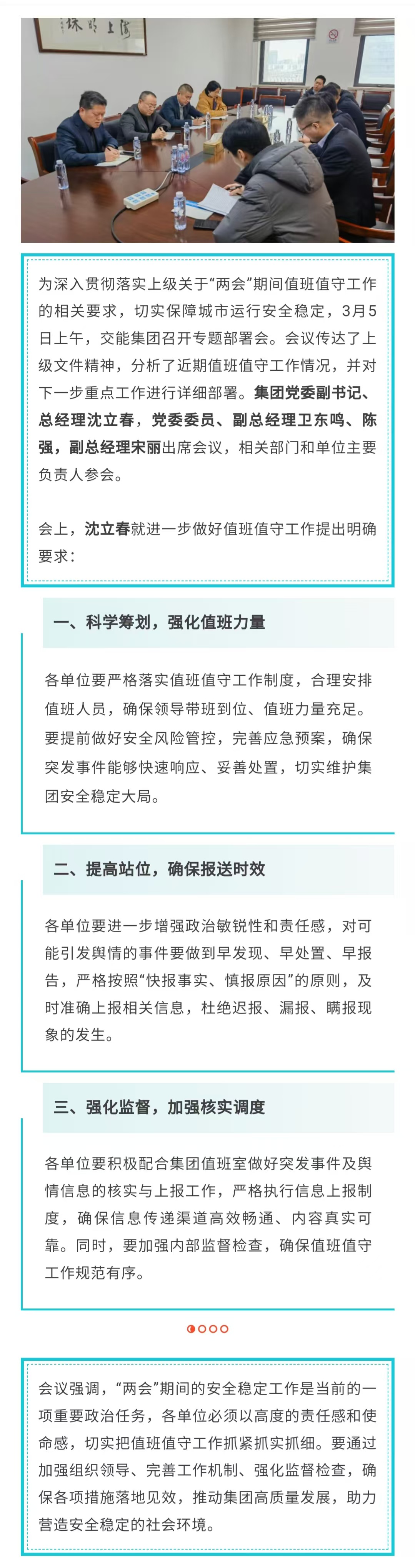 交能集团召开进一步加强“两会”期间值班值守工作部署会