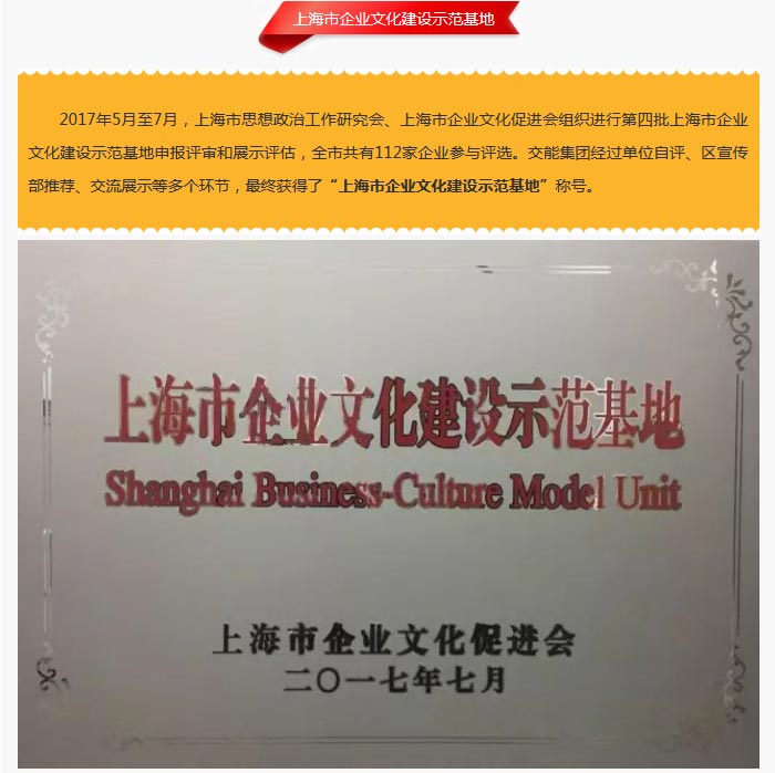 【捷报】交能集团荣获“上海市企业文化建设示范基地”称号