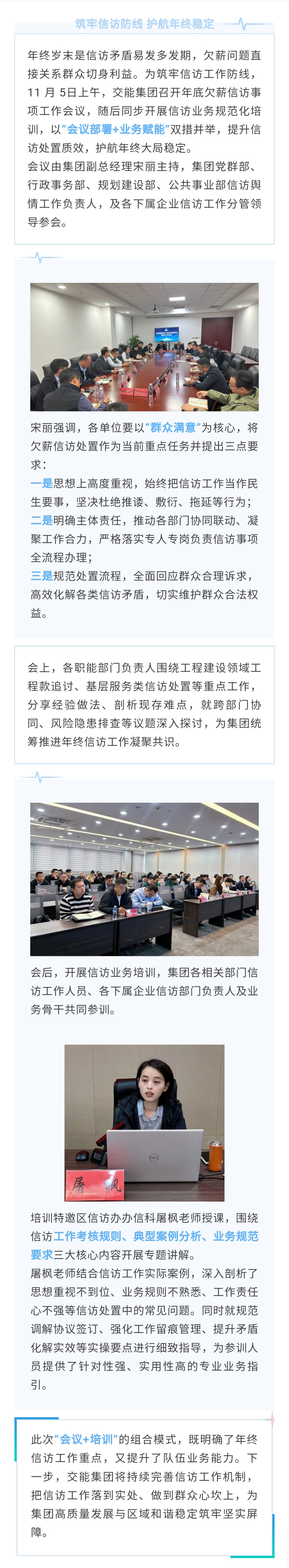 筑牢信访防线 护航年终稳定 交能集团召开信访工作会暨信访业务培训