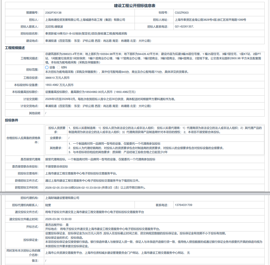 https://ciac.zjw.sh.gov.cn/JGBAppZtbInterWeb/pc/#/jyggInfo?id=2209671&zbid=2004933&projectName=%E5%A5%89%E8%B4%A4%E6%96%B0%E5%9F%8E18%E5%8D%95%E5%85%8301-B-02%E5%9C%B0%E5%9D%97%28%E6%9A%82%E5%AE%9A%E5%90%8D%29%E9%A1%B9%E7%9B%AE%28%E9%99%A4%E6%A1%A9%E5%9F%BA%E5%B7%A5%E7%A8%8B%29%E9%85%8D%E7%94%B5%E7%AE%B1%E9%87%87%E8%B4%AD&gglx=zbgg&category