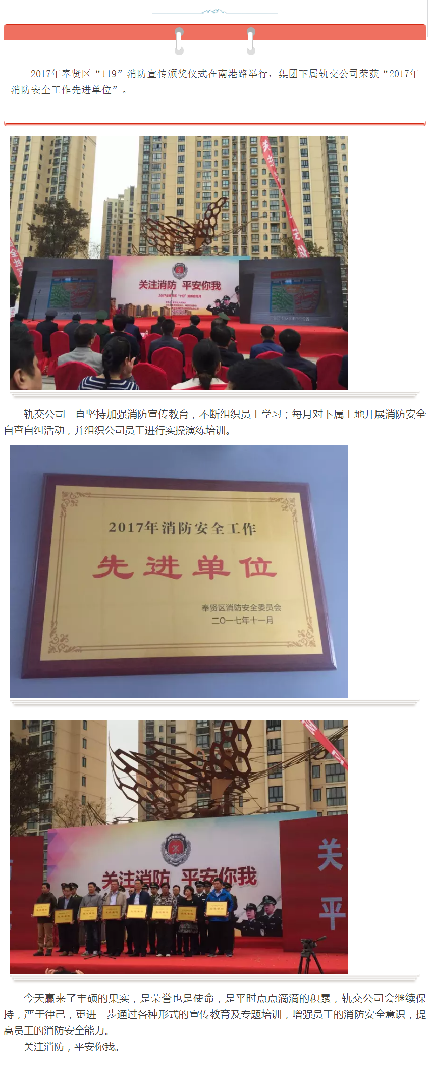 轨交公司荣获消防安全工作先进单位