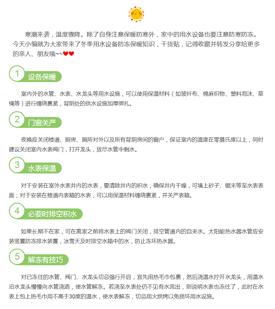 冬季用水设备小贴士