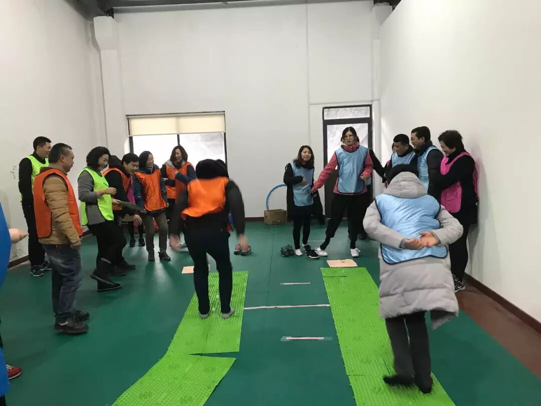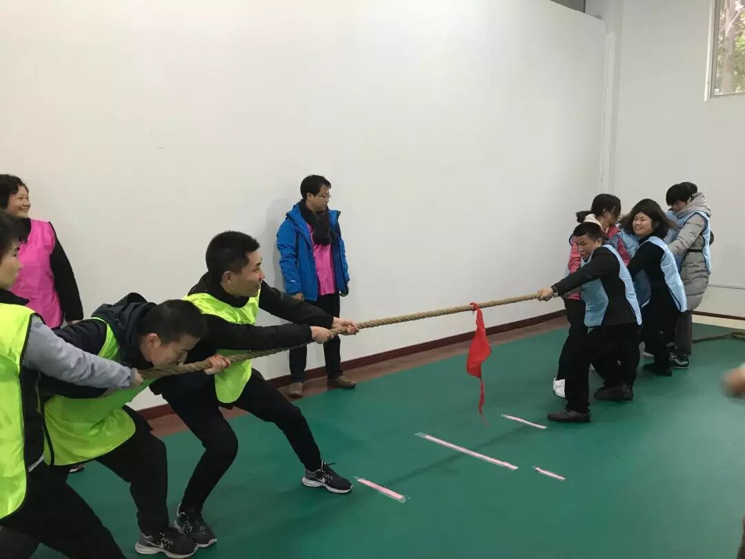 团队赛4项,分别是背夹球接力、指压板蛙跳接力、呼啦圈过山车和拔河赛。