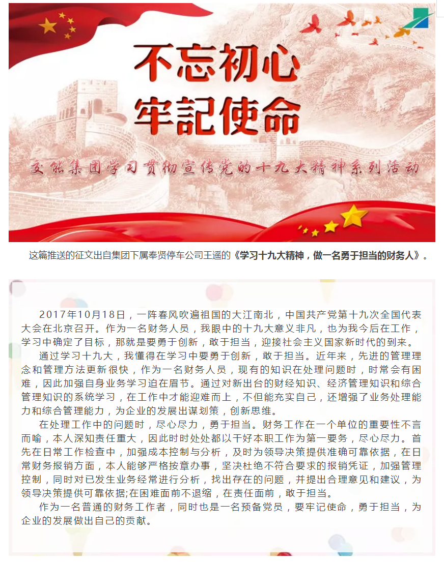 【畅谈十九大二十八】王遥:学习十九大精神,做一名勇于担当的财务人