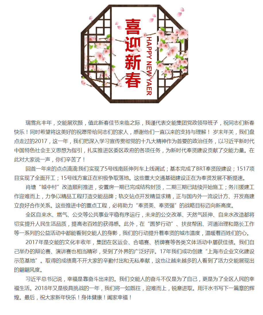 交能集团党委书记、董事长瞿剑平祝大家新春快乐!