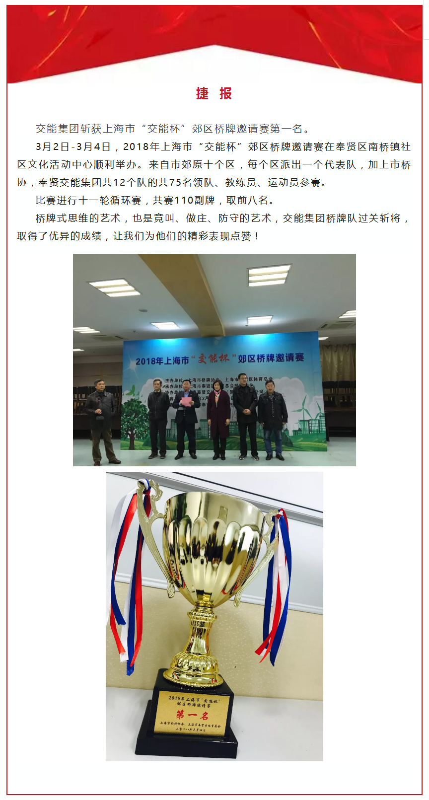 【捷报】交能集团斩获上海市“交能杯”郊区桥牌邀请赛第一名