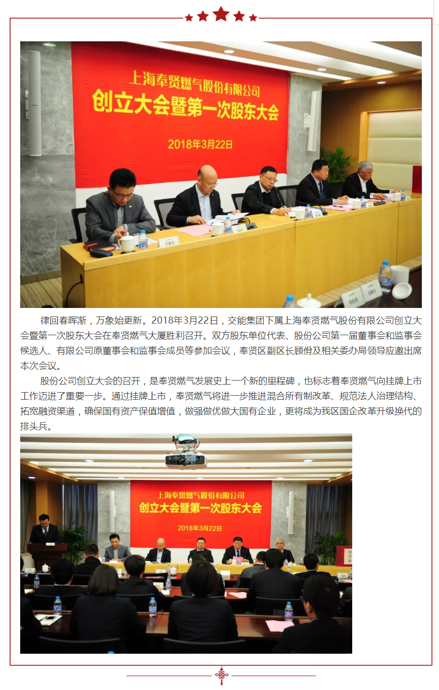 上海奉贤燃气股份有限公司召开创立大会暨第一次股东大会