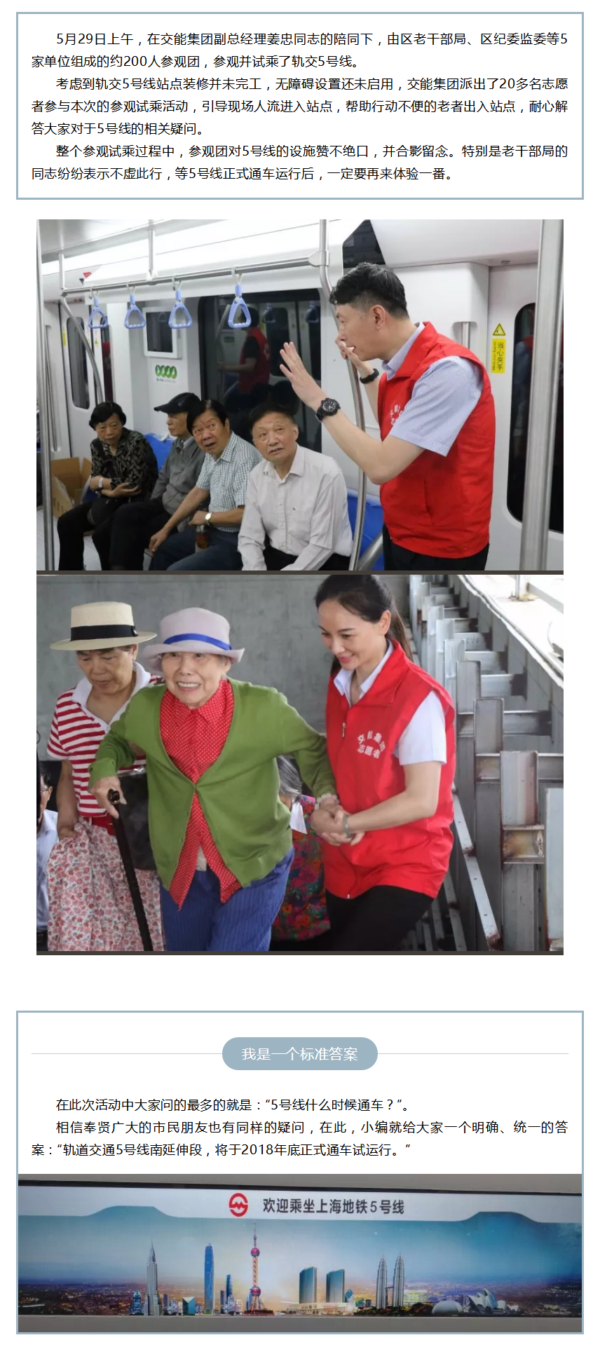 轨交5号线开展参观试乘活动