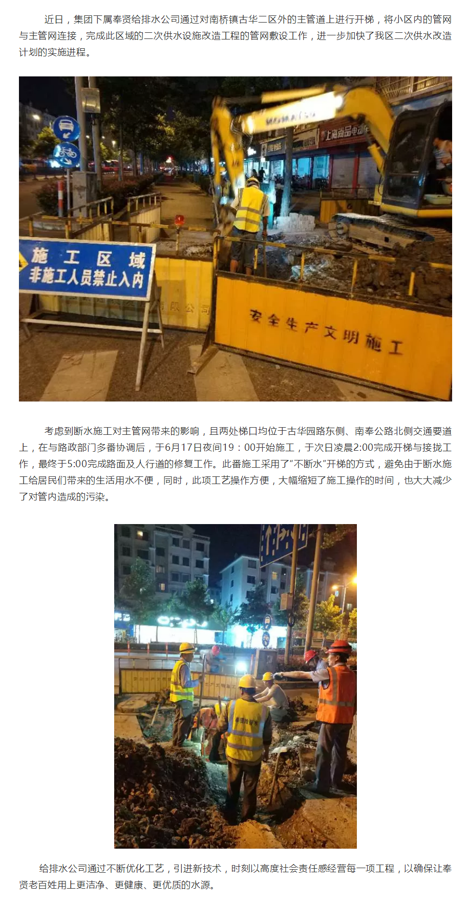 【供水】古华二区二次供水改造开梯接拢工作顺利完成