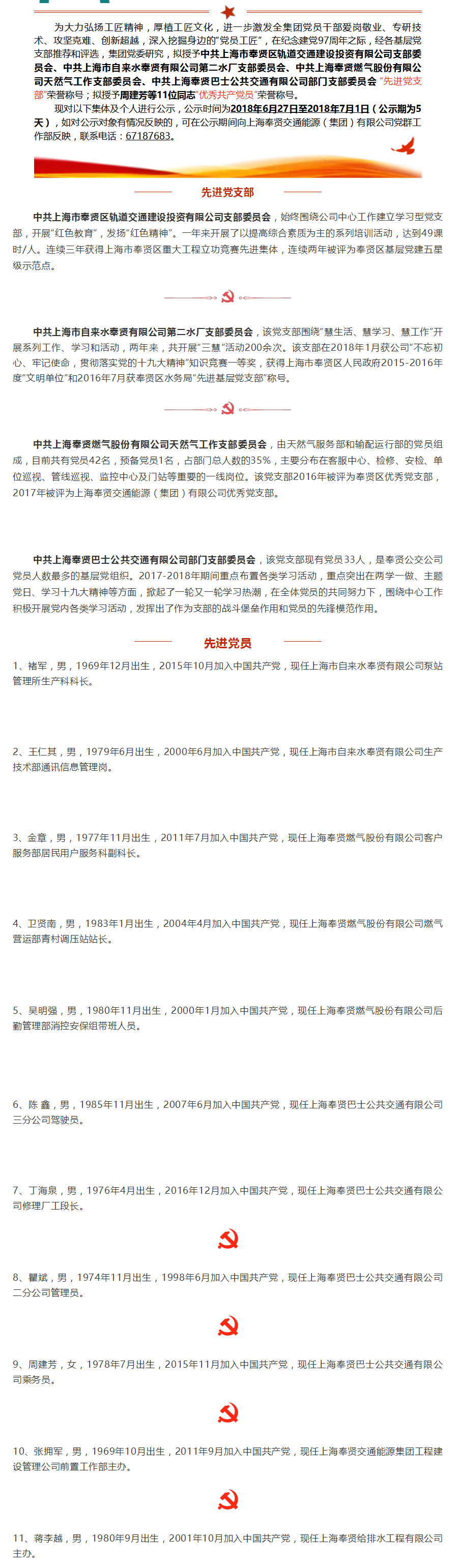 【公示】交能集团2018年度先进党支部、优秀共产党员评选结果公示