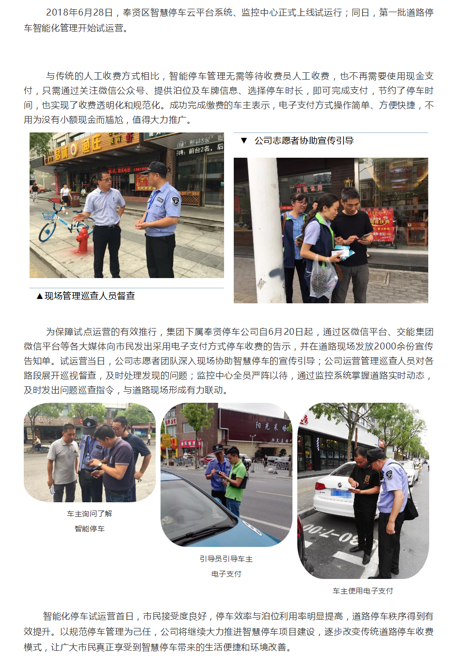 奉贤区道路停车智能化管理试运营正式启动