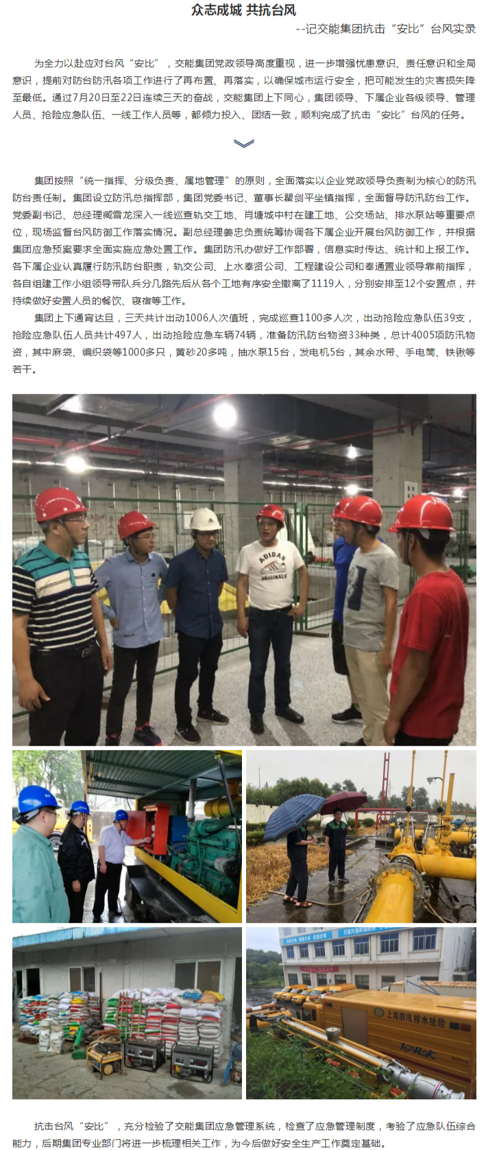 众志成城 共抗台风--记交能集团抗击“安比”台风实录