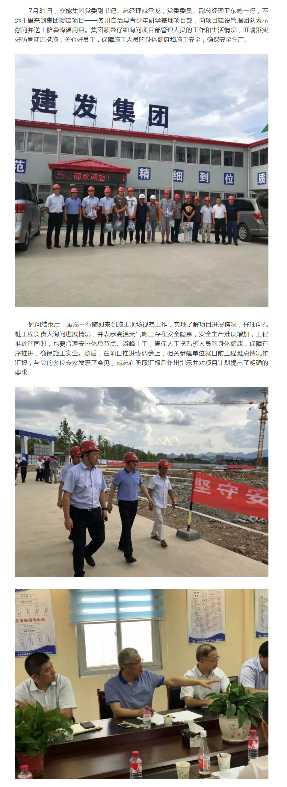 交能集团、务川县总工会领导分别慰问务川青少年研学旅行基地建设项目一线员工