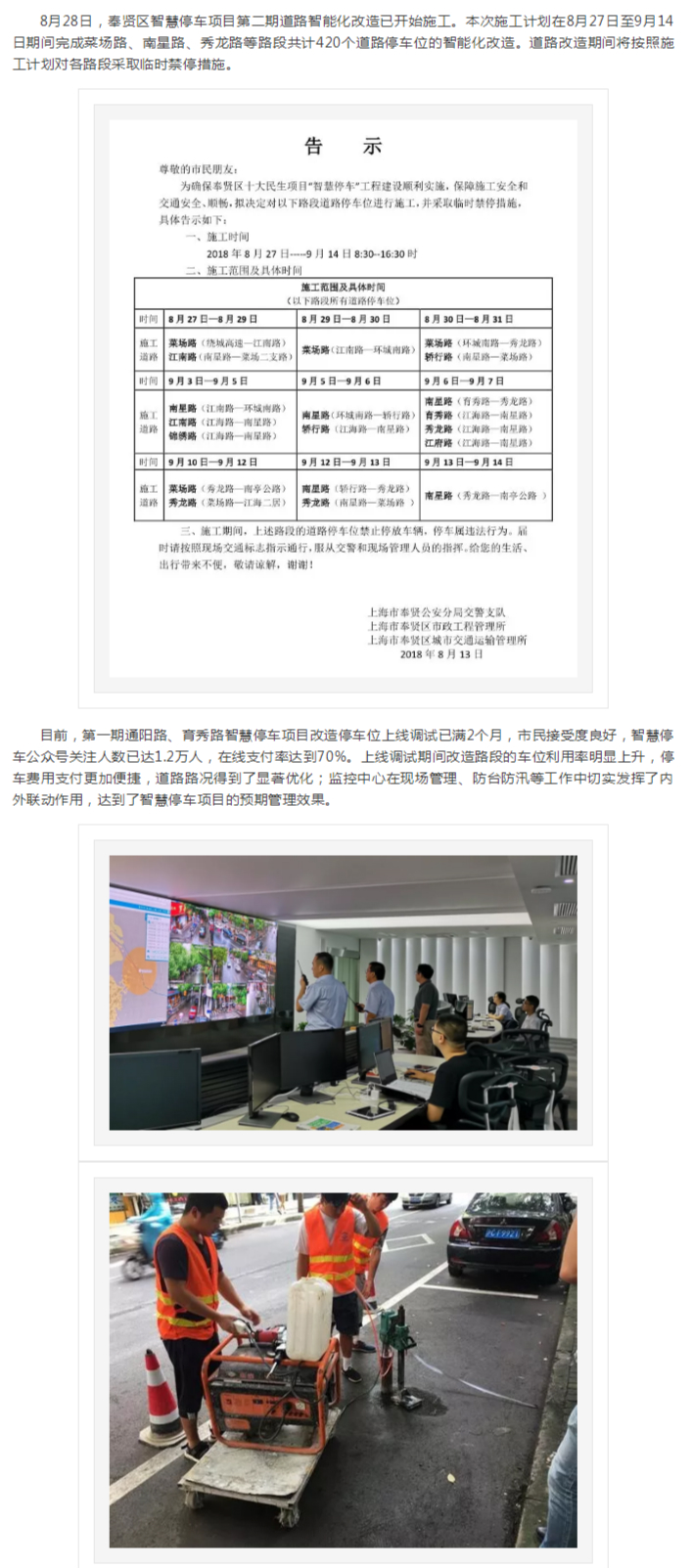 奉贤区智慧停车项目第二期道路智能化改造如期实施