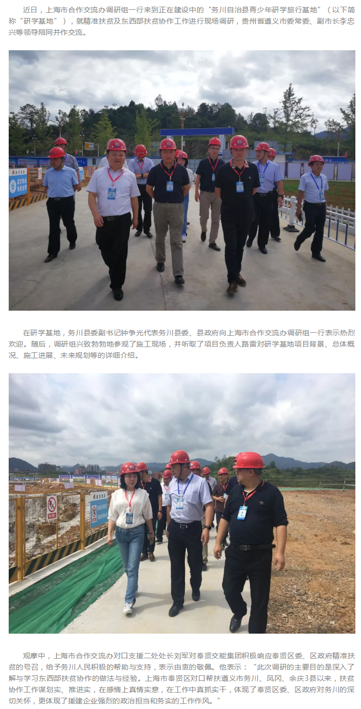上海市合作交流办调研务川自治县青少年研学旅行基地