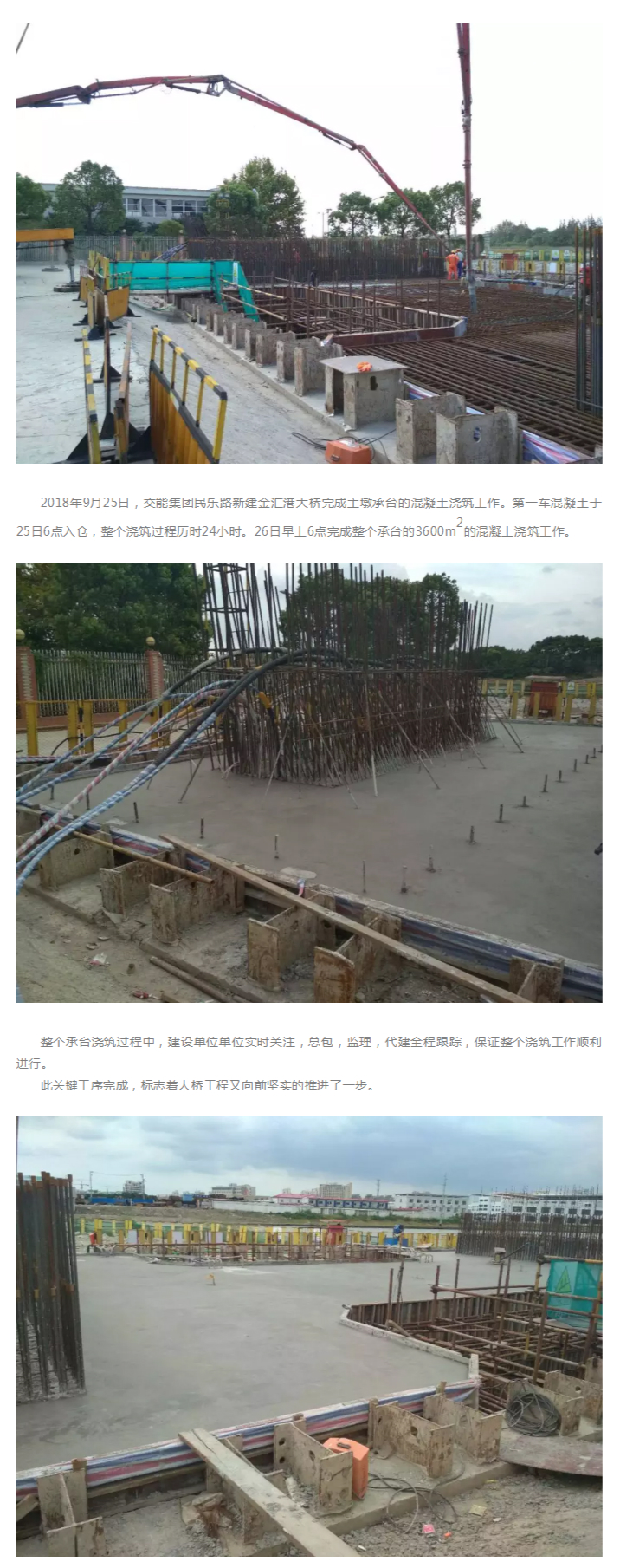 民乐路新建金汇港大桥完成主墩承台浇筑