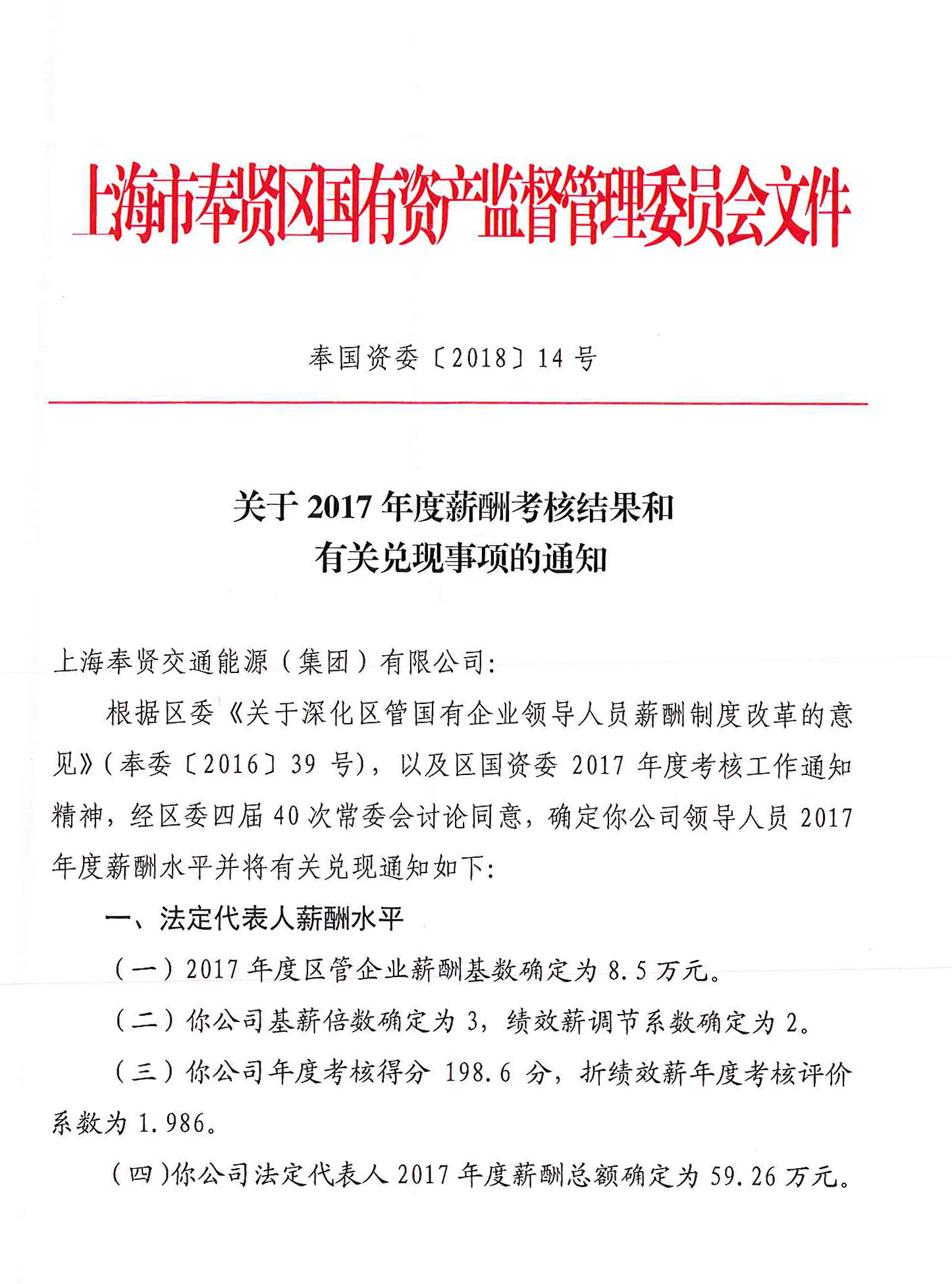 【公示】国资委-关于2017年度薪酬考核结果和有关兑现事项的通知