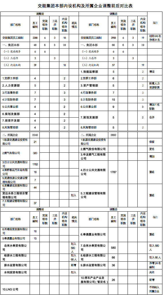 附件:交能集团本部内设机构及所属企业调整前后对比表
