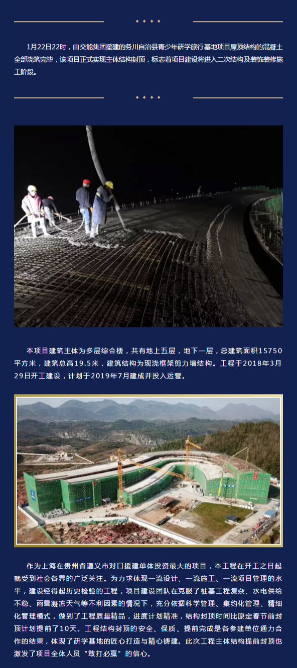 务川自治县青少年研学旅行基地项目主体结构顺利封顶