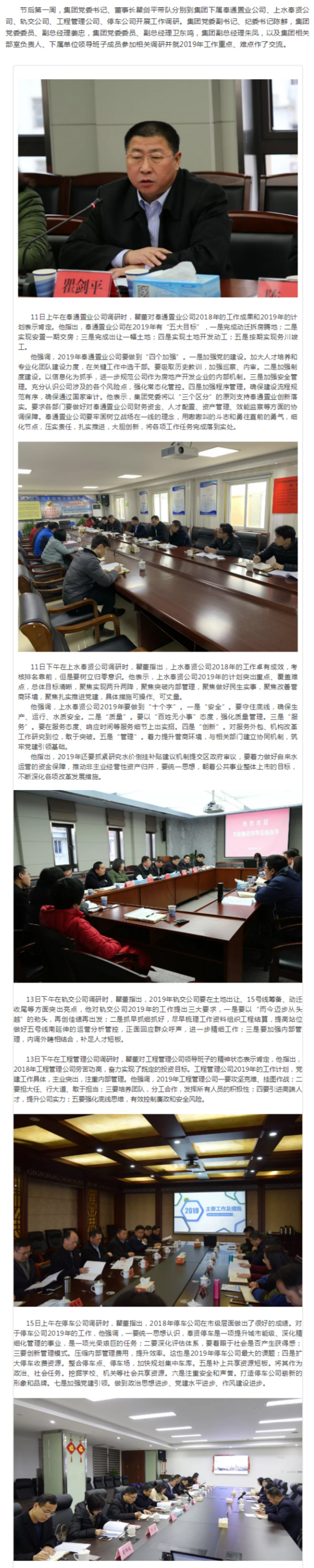 交能集团党委书记、董事长瞿剑平带队开展工作调研