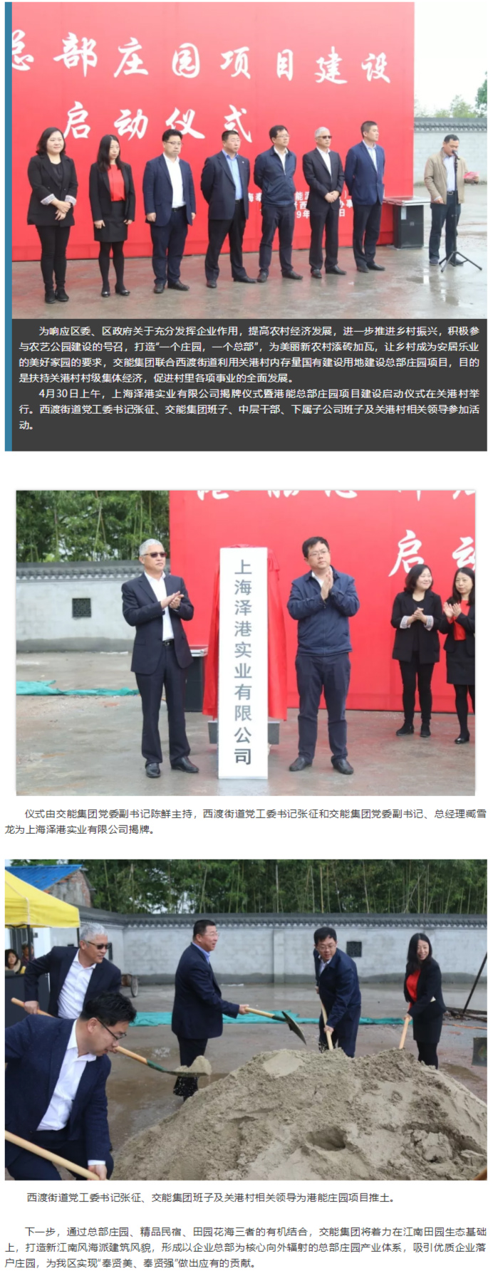 交能集团:上海泽港实业有限公司揭牌仪式暨港能总部庄园项目建设启动仪式