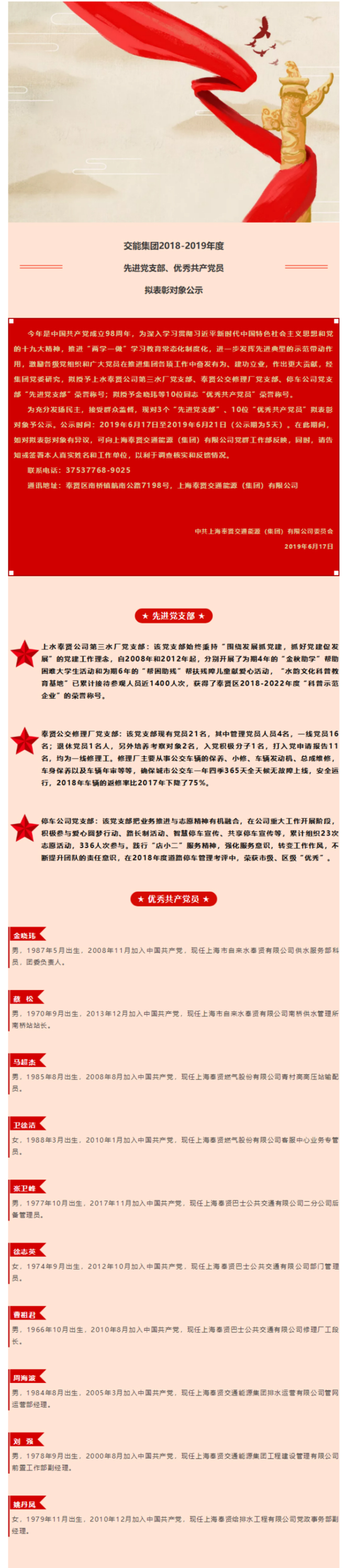 【公示】交能集团2018-2019年度先进党支部、优秀共产党员拟表彰对象公示