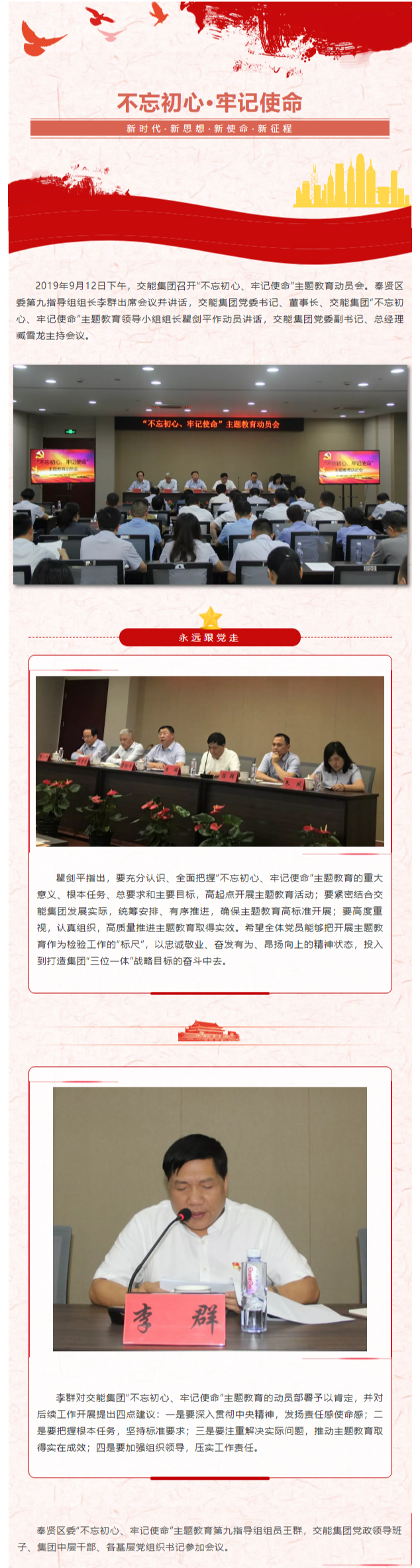 交能集团召开“不忘初心、牢记使命” 主题教育动员会