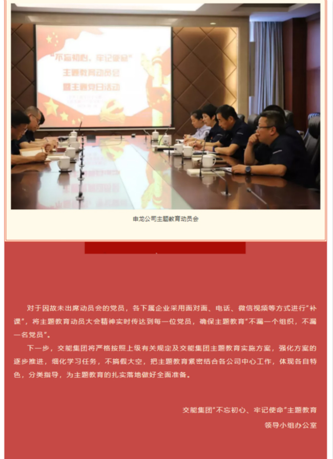 交能集团下属企业“不忘初心、牢记使命” 主题教育动员部署迅速启动