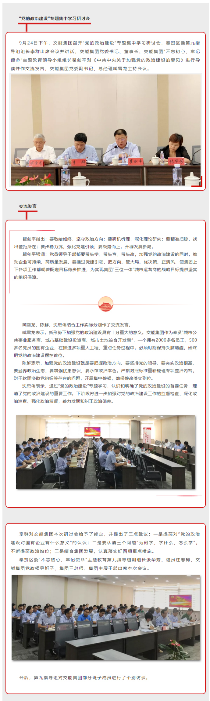 交能集团召开“党的政治建设”专题集中学习研讨会