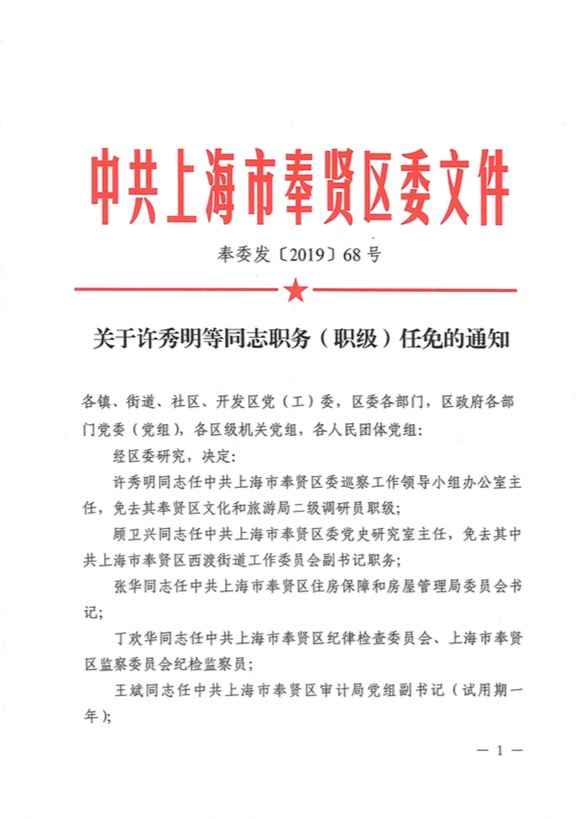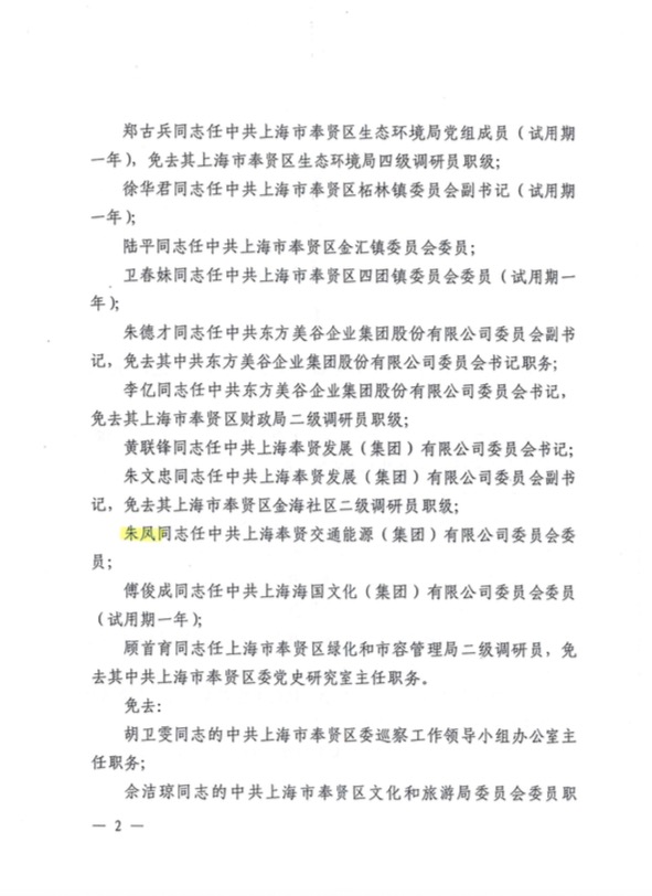 关于朱凤同志任职信息